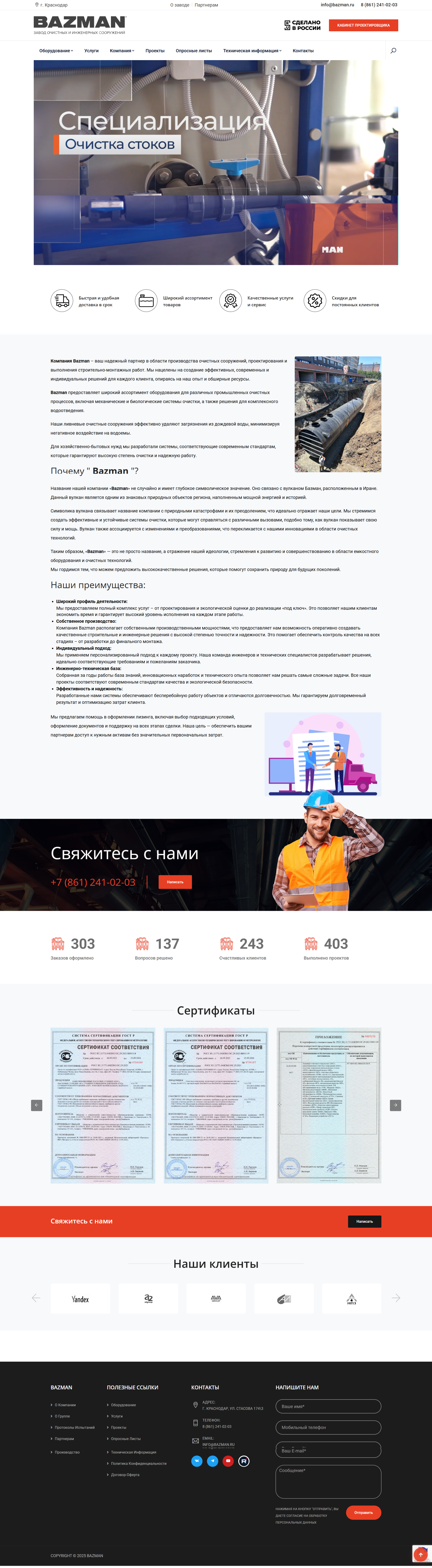 Для производственной компании BAZMAN мы разработали функциональный корпоративный сайт на платформе «1С-Битрикс: Управление сайтом».
